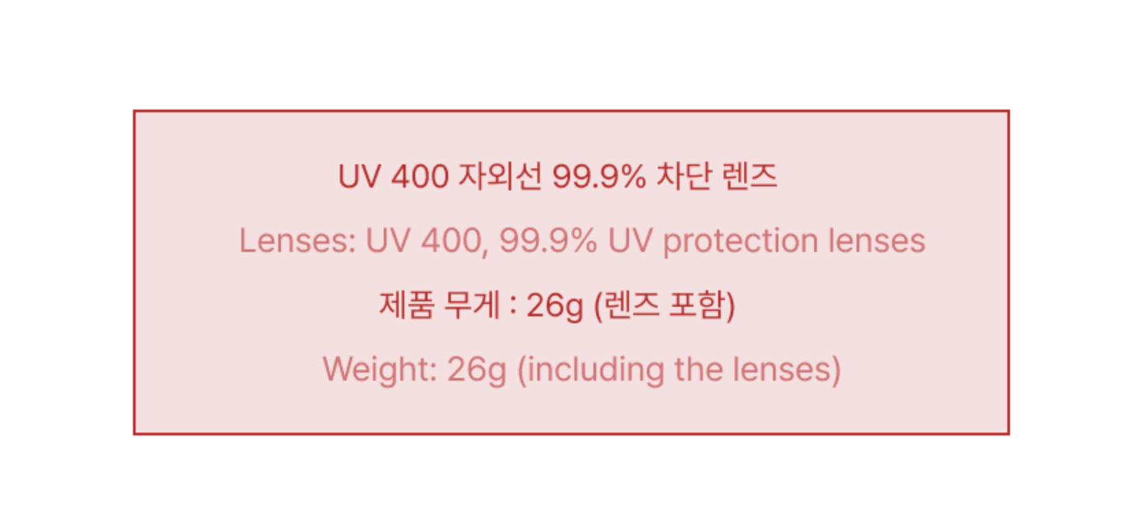 Content: Sunglasses 1ea + Cleaning cloth 1ea + Case 1ea + Photo Card 4ea