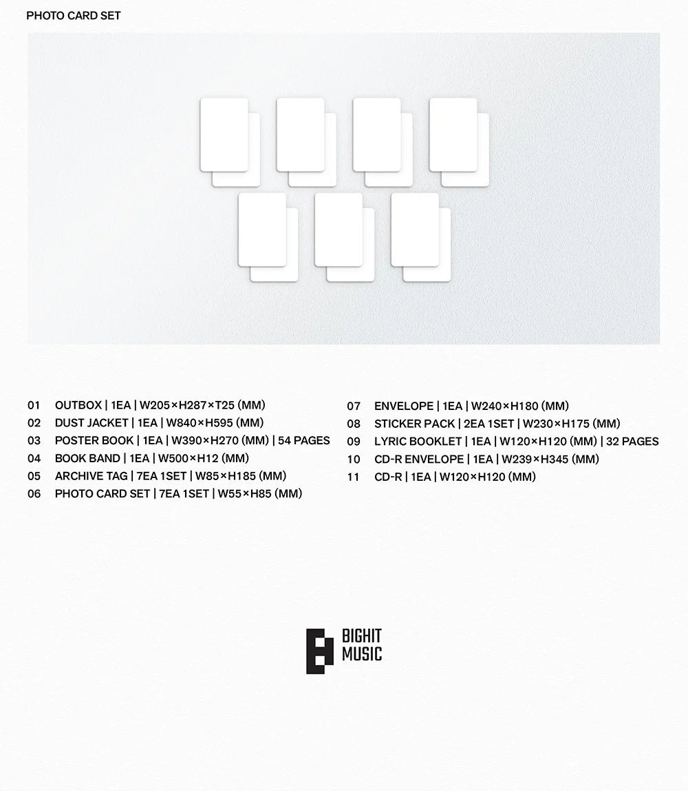 ★Package:1ea CD-R + 1ea Dust Jacket + 54p Poster Book + 1ea Book Band + 1ea Archive Tag Set (1set 7ea) + 1ea Photo Card Set (1set 7ea) + 1ea Sticker Pack (1pack 2ea) + 32p Lyric Booklet